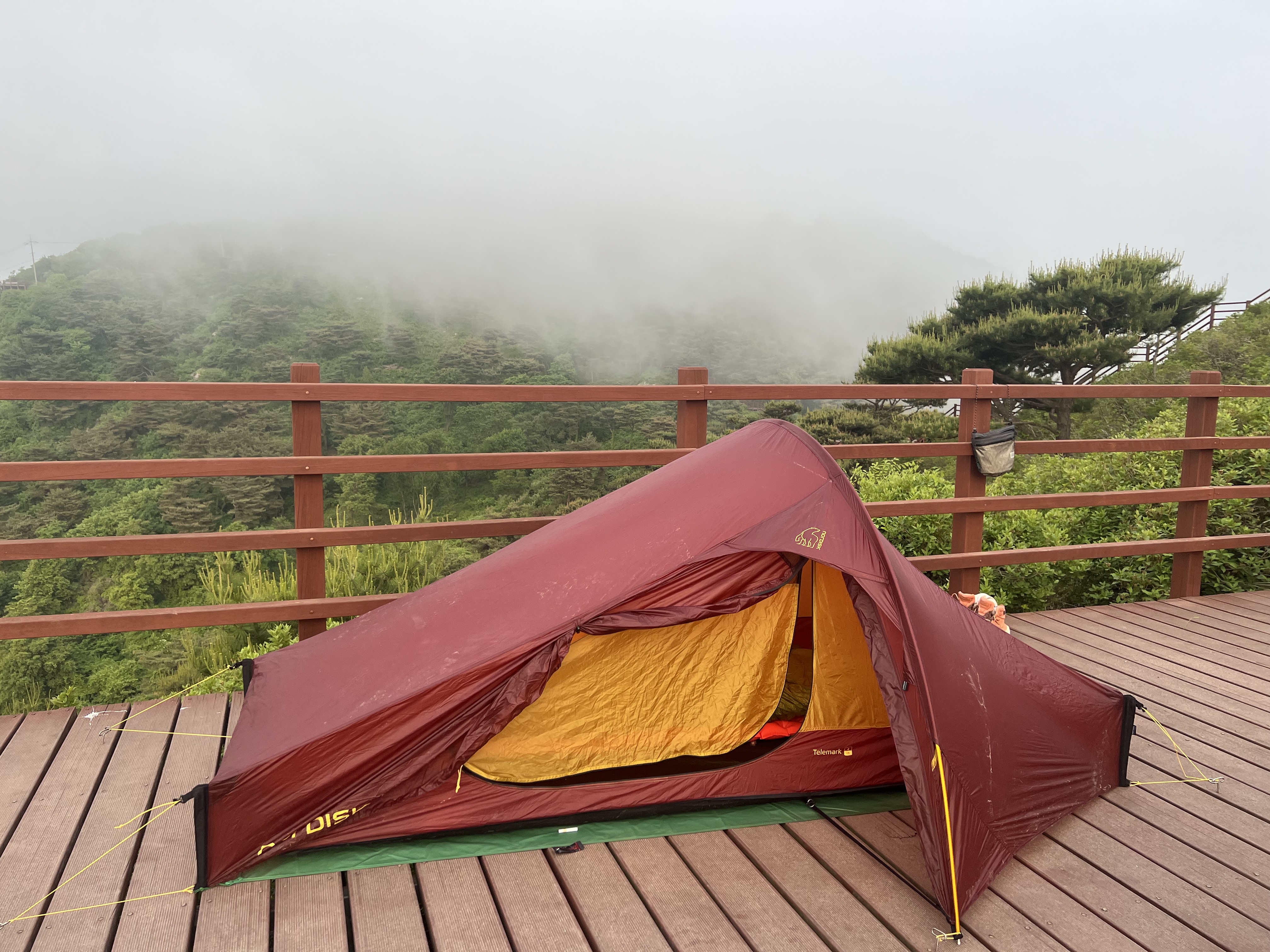 정상 데크에서 텐트 피칭 후 1박